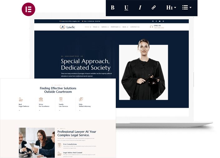 Elementor offers intuitive interface and flexibility. It is one of the most user-friendly page builders for WordPress. Customize your Lawfic template with ease using a set of additional elements.